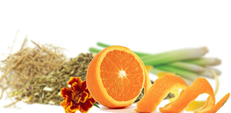 VETIVER . LEMON PEEL . ORANGE PEEL . MARIGOLD FLOWERS . LEMON GRASS in GREEN ROOIBOS