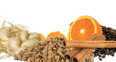 VETIVER . TOASTED BUCKWHEAT . ORANGE PEEL CINNAMON BARK . GINGER in DECAF GREEN TEA